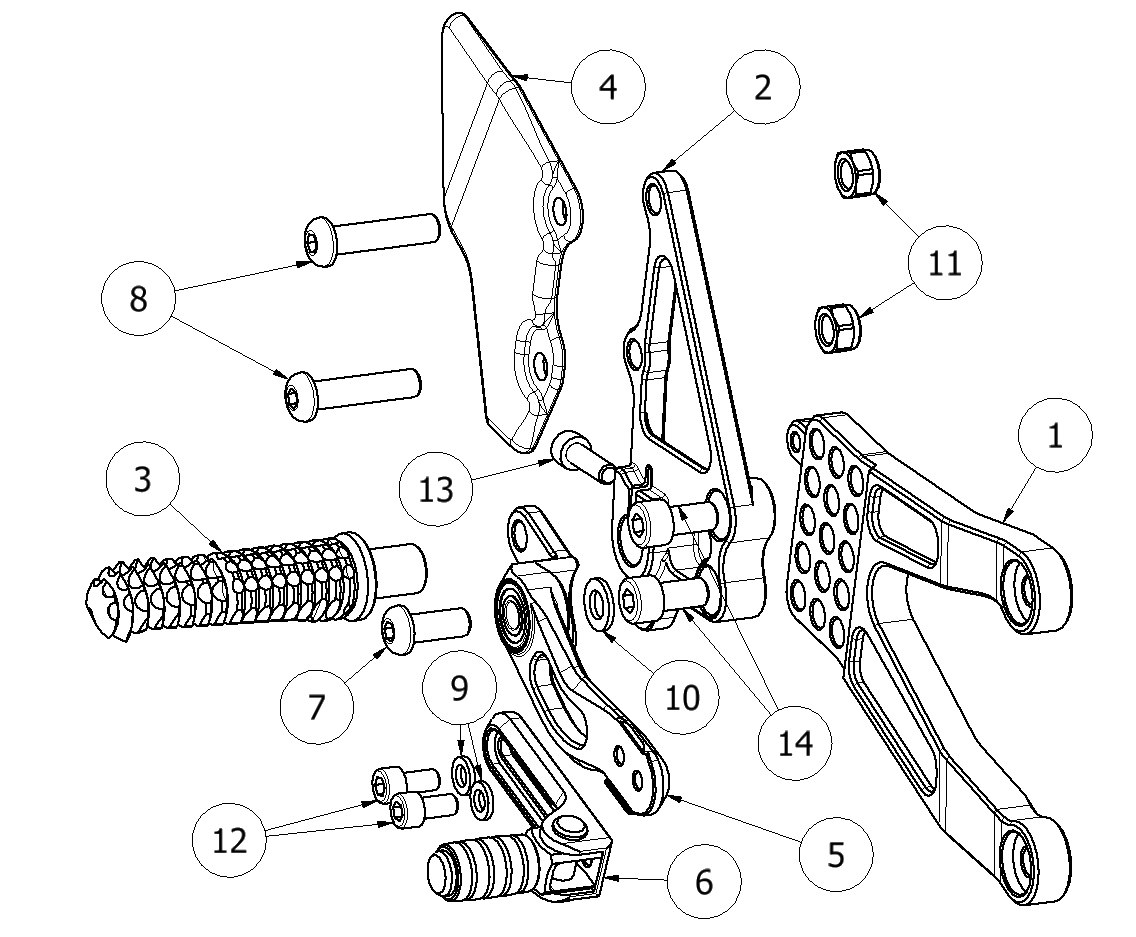 11811006B Rt., Peg Holder (8mm Master), YZF R1 09-14, Black