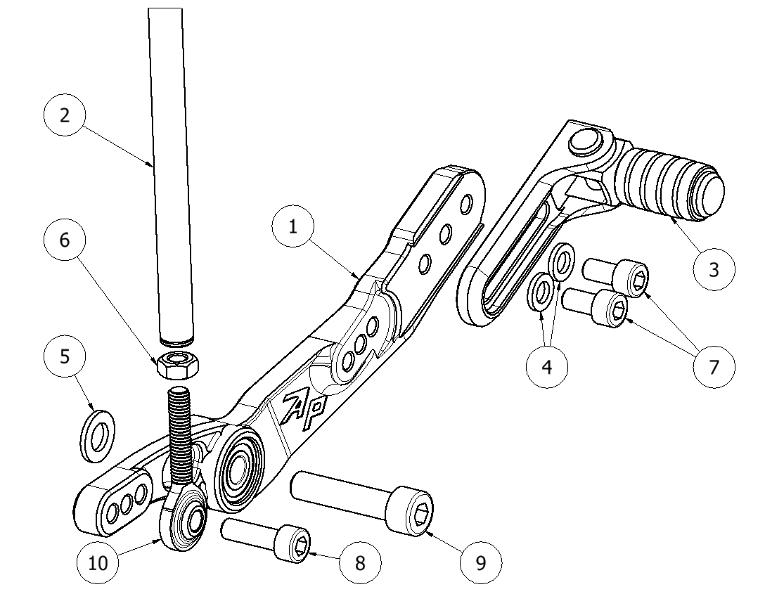 90111022B Shift Lever Slider Assembly w/Pedal, Engine Mounting, Black