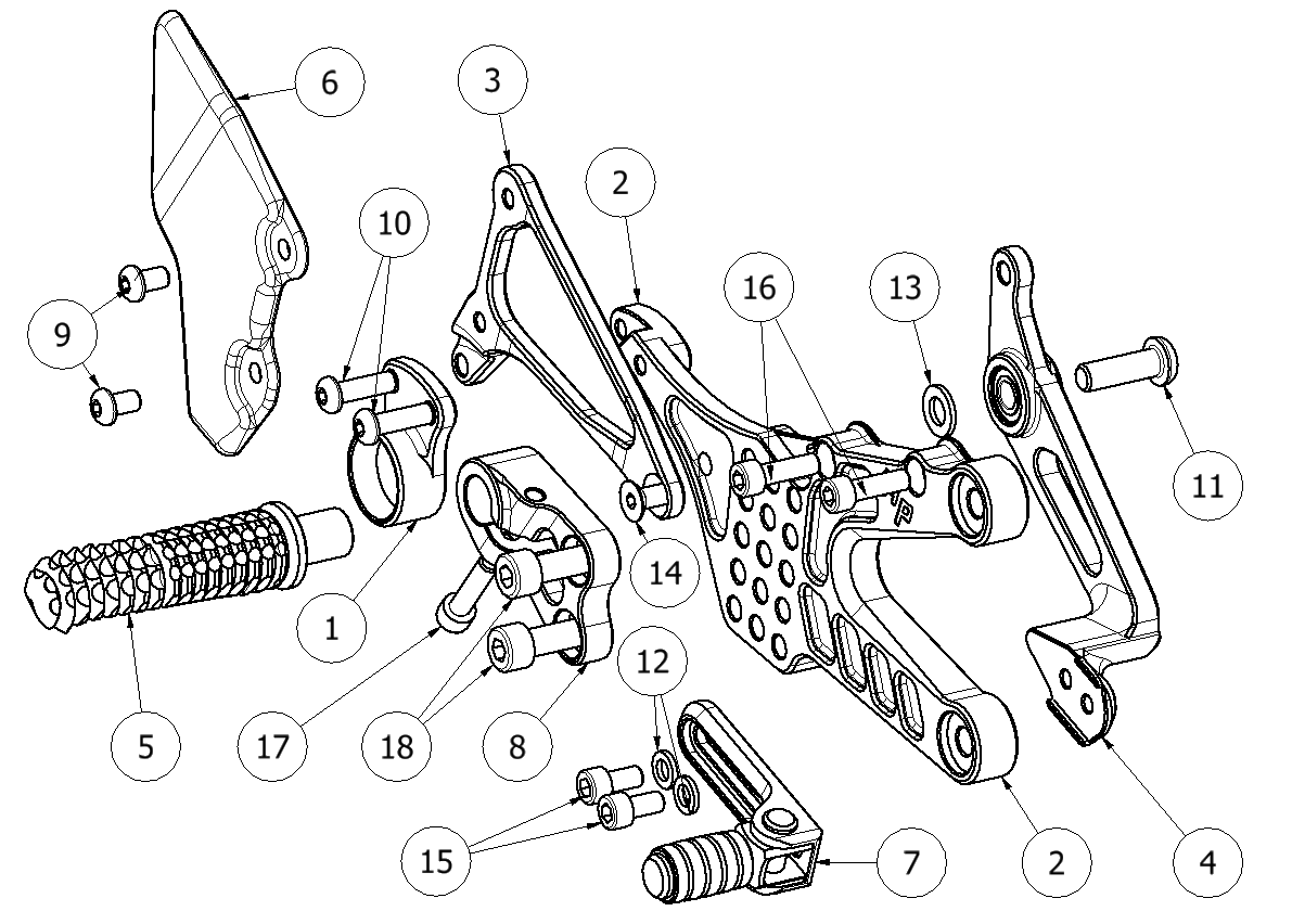 11711701G Rearset Muffler Brkt., 06-09 Yam R6, Aero Hard