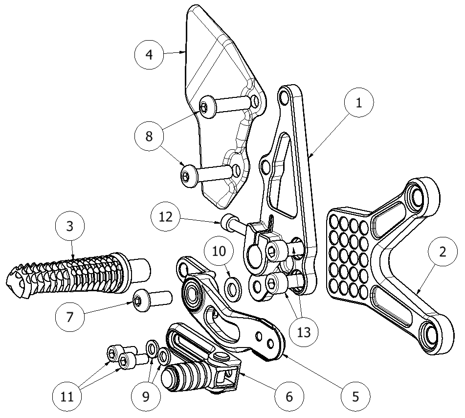 31311004B Rt. Bracket, Adj., KAW ZX6R 05- , Black