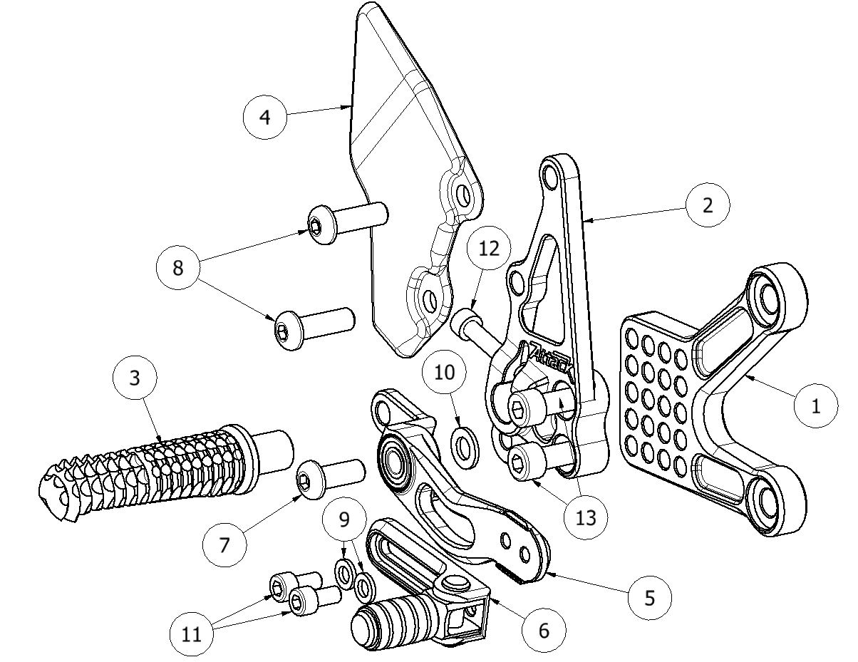 90111023B Brake Lever Slider Assembly w/Pedal, Peg Braket Mounting, Black