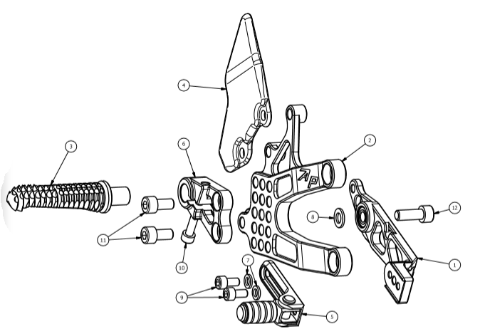 90111023G Brake Lever Slider Assembly w/Pedal, Peg Braket Mounting, Aero Hard