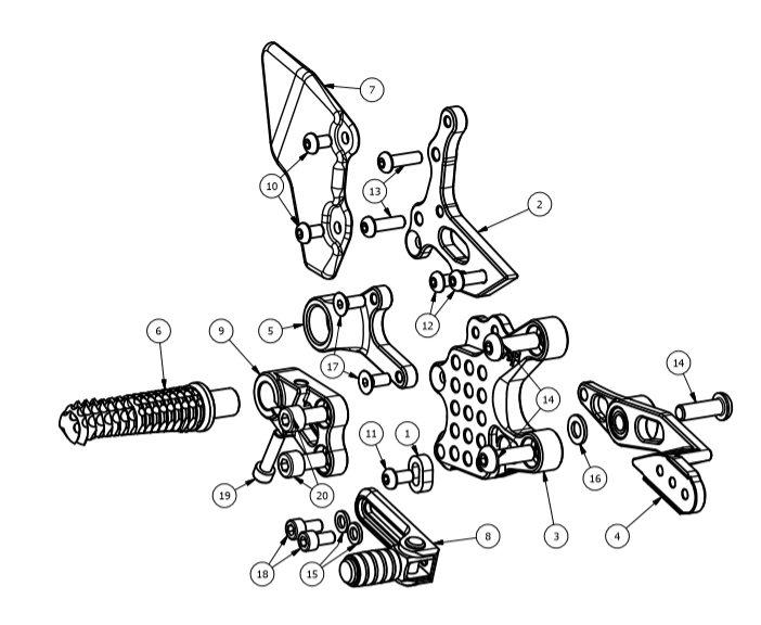90111023B Brake Lever Slider Assembly w/Pedal, Peg Braket Mounting, Black