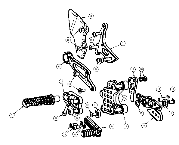 90111023S Brake Lever Slider Assembly w/Pedal, Peg Braket Mounting, Clear